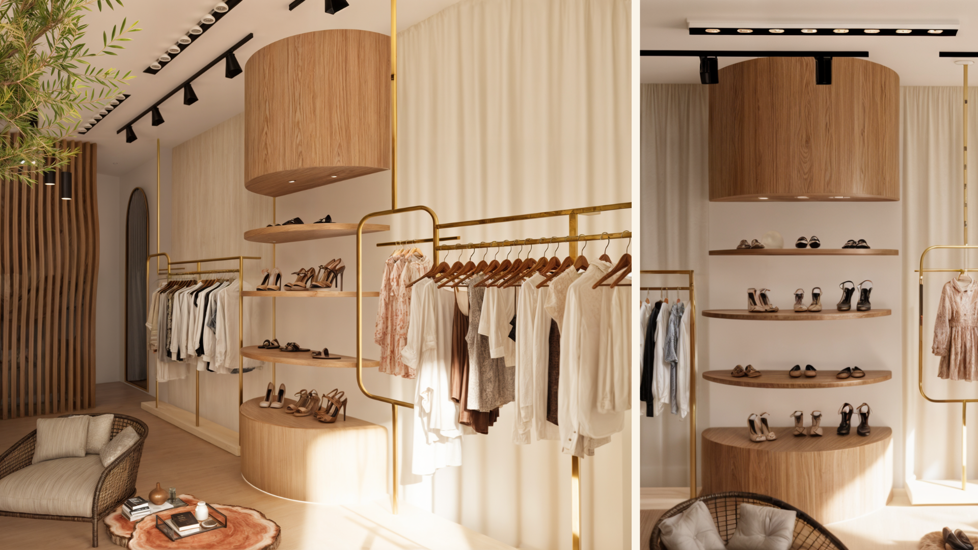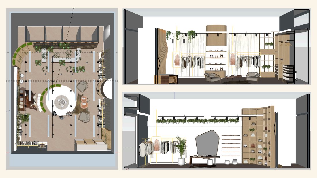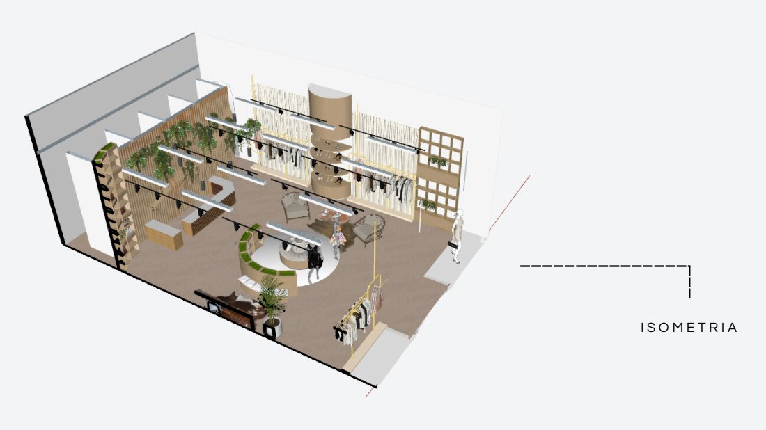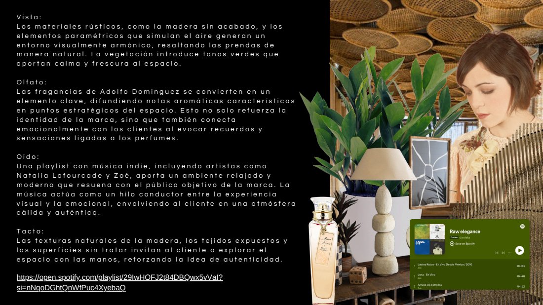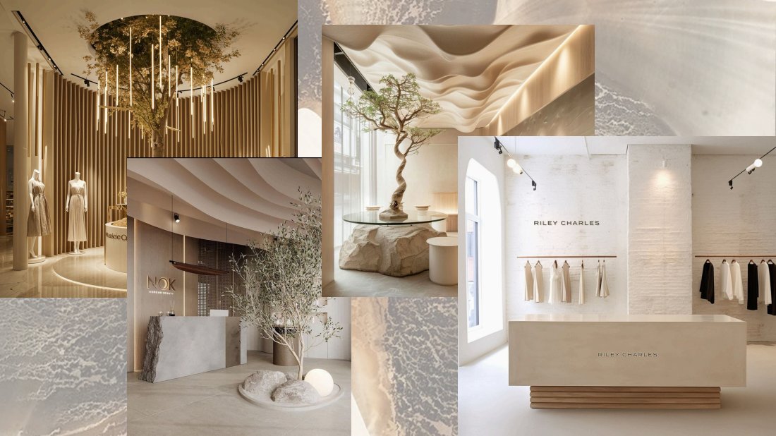 El diseño de la boutique para Adolfo Domínguez refleja la esencia de la naturaleza y la autenticidad. Inspirada en el compromiso de la marca con lo real, el espacio utiliza madera sin acabado y vegetación exuberante para transmitir una conexión directa con el entorno natural. Además, incorpora elementos paramétricos que simulan el movimiento del aire, creando una atmósfera dinámica y envolvente que evoca fluidez y ligereza.