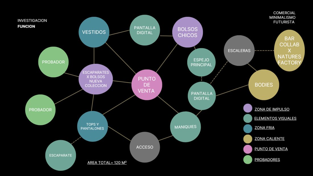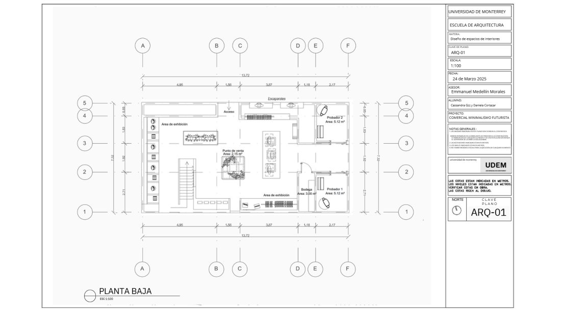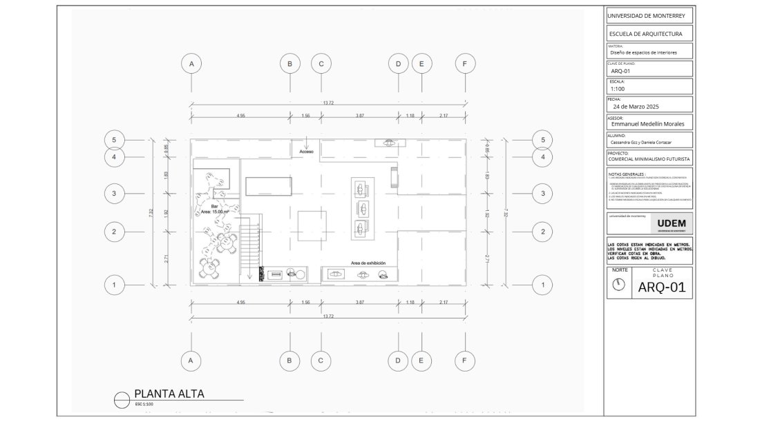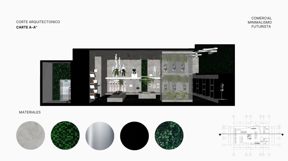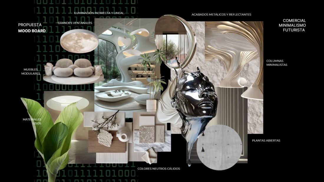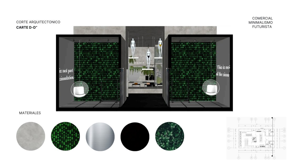Amelia es una boutique conceptual ubicada en el sexto piso del CRGS en la Universidad de Monterrey. Su diseño fusiona naturaleza, estética hacker y gravedad cero para ofrecer una experiencia multisensorial a un público joven y creativo. Distribuida en dos niveles, integra moda y tecnología en un ambiente envolvente. En el primer nivel, maniquíes suspendidos, frases clave y pantallas digitales crean un recorrido inmersivo. En el segundo, un mini bar en colaboración con Nature’s Factory complementa la experiencia. La materialidad equilibra lo natural y lo artificial, reflejando la identidad fluida, moderna y sensorial de Amelia.