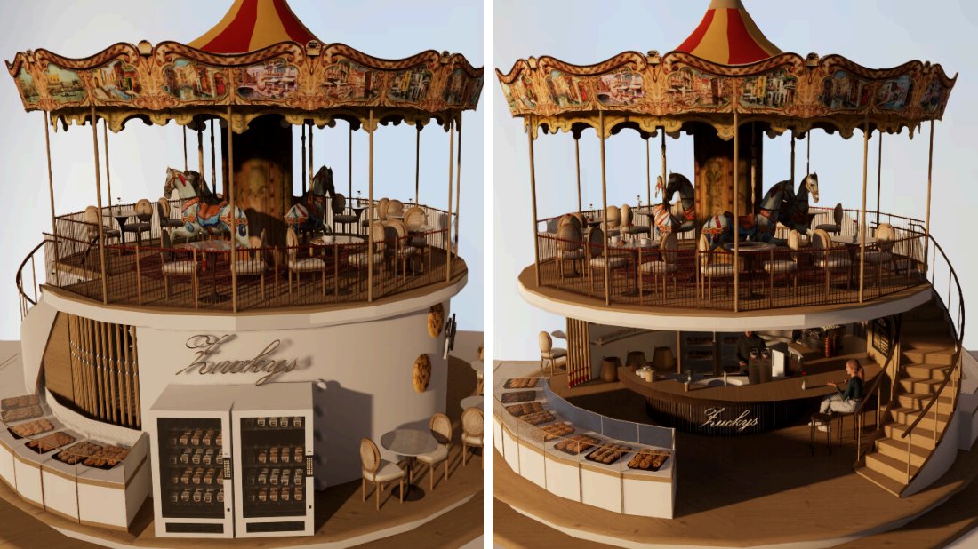 En Zuckys, queremos que vivas algo único y emocionante, una experiencia que va más allá de lo que imaginas al probar una galleta. Nuestro pop-up store no solo te ofrece los sabores frescos y auténticos que amas, sino que te sumerge en un mundo de diversión y sabor, diseñado para ser un lugar que no olvidarás. Con un diseño inspirado en un carrusel, Zuckys combina lo mejor de lo clásico con lo moderno para crear una experiencia que nunca has vivido.
